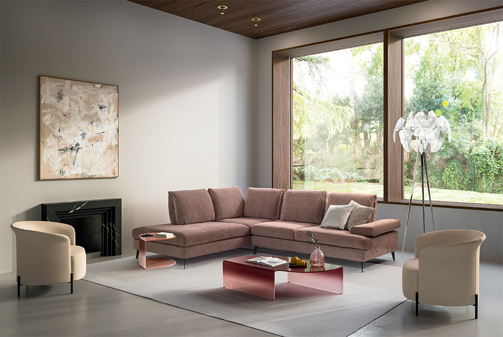 Minimal aesthetics with clean and essential lines, but with soft and embracing shapes, Landa is characterized by its elegance, but also by a hidden detail, which becomes the precious element: the movement that allows to reach the desired comfort thanks to the perfect cushion, armrest and backrest incline.