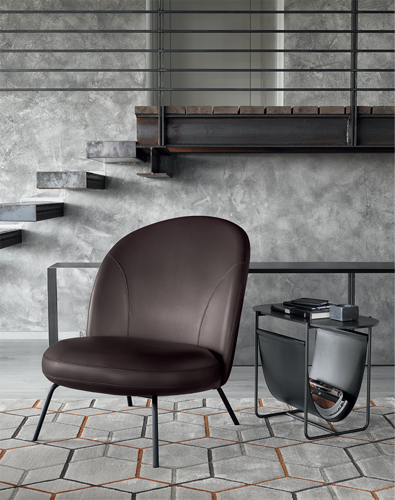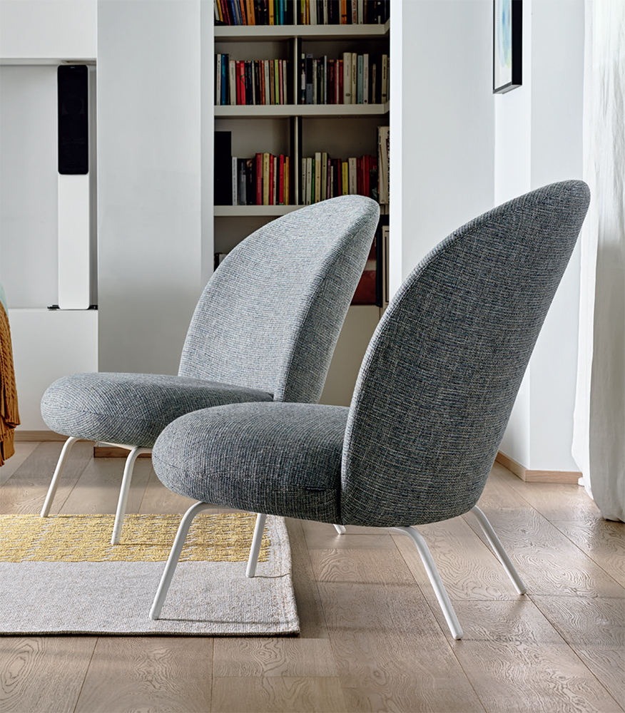 Padded and fixed upholstered multilayer lounge chair seat shell. Puffy features round shapes and large dimensions offering freedom when sitting on it, excellent comfort and the utmost relaxation guaranteeing a suitable head support.
