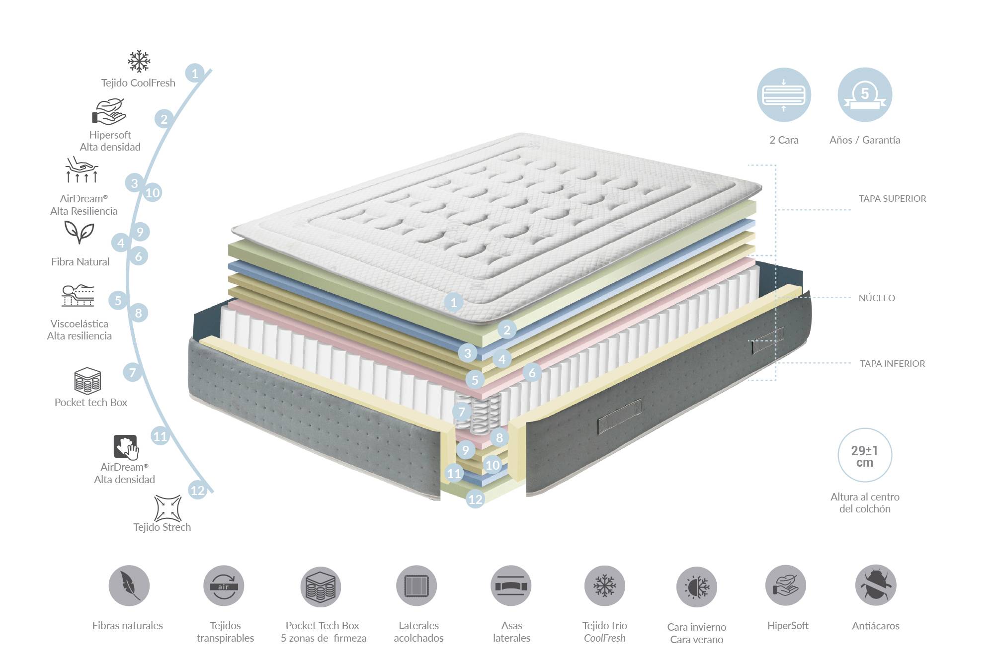 Polar ներքնակը նորարարական է շատ յուրահատուկ և բացառիկ հատկանիշներով: Այս ներքնակը հատկապես հարմար է օգտագործել ամառային ամիսներին POLAR COOLFRESH սառեցնող գործվածքի շնորհիվ, որն օգնում է կարգավորել մարմնի ջերմաստիճանը: Այս գործվածքով ամառային կողմը հեռացնում է ջերմության և խոնավության 45%-ը, ինչը երաշխավորում է հարմարավետ քուն ամառային շոգ ամիսներին: Ներքնակի ձմեռային երեսը պատրաստված է բարձր խտության հիշողության փրփուրից, որը հավասարաչափ բաշխում է մարմնի ջերմաստիճանը՝ դարձնելով ավելի տաք և հարմարավետ ցուրտ ամիսներին: