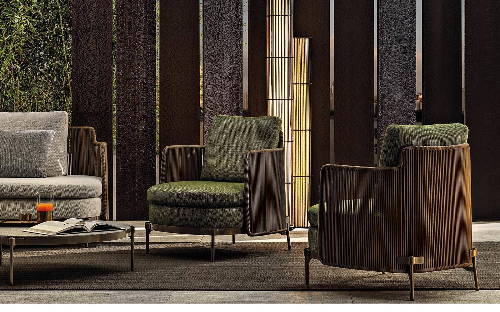 In 2020, Oki Sato designed the Torii family of seats and furnishing accessories, available for both residential and Hospitality settings: a very detailed project that plays around with the roundness of the volumes, the thinness of the profiles and the apparent formal simplicity, at the same time highlighting the haute couture approach in Minotti’s distinctive sartorial craftsmanship.