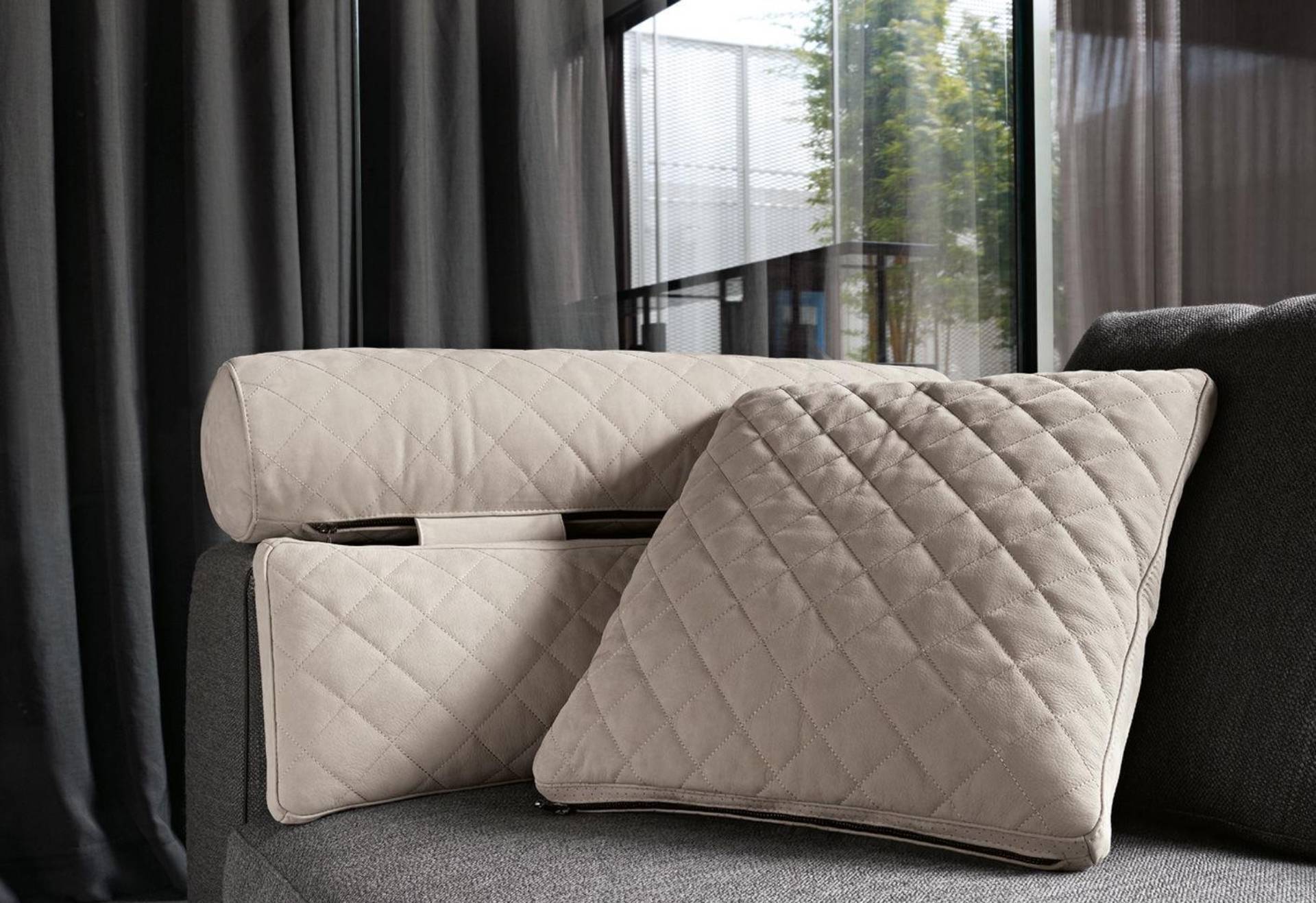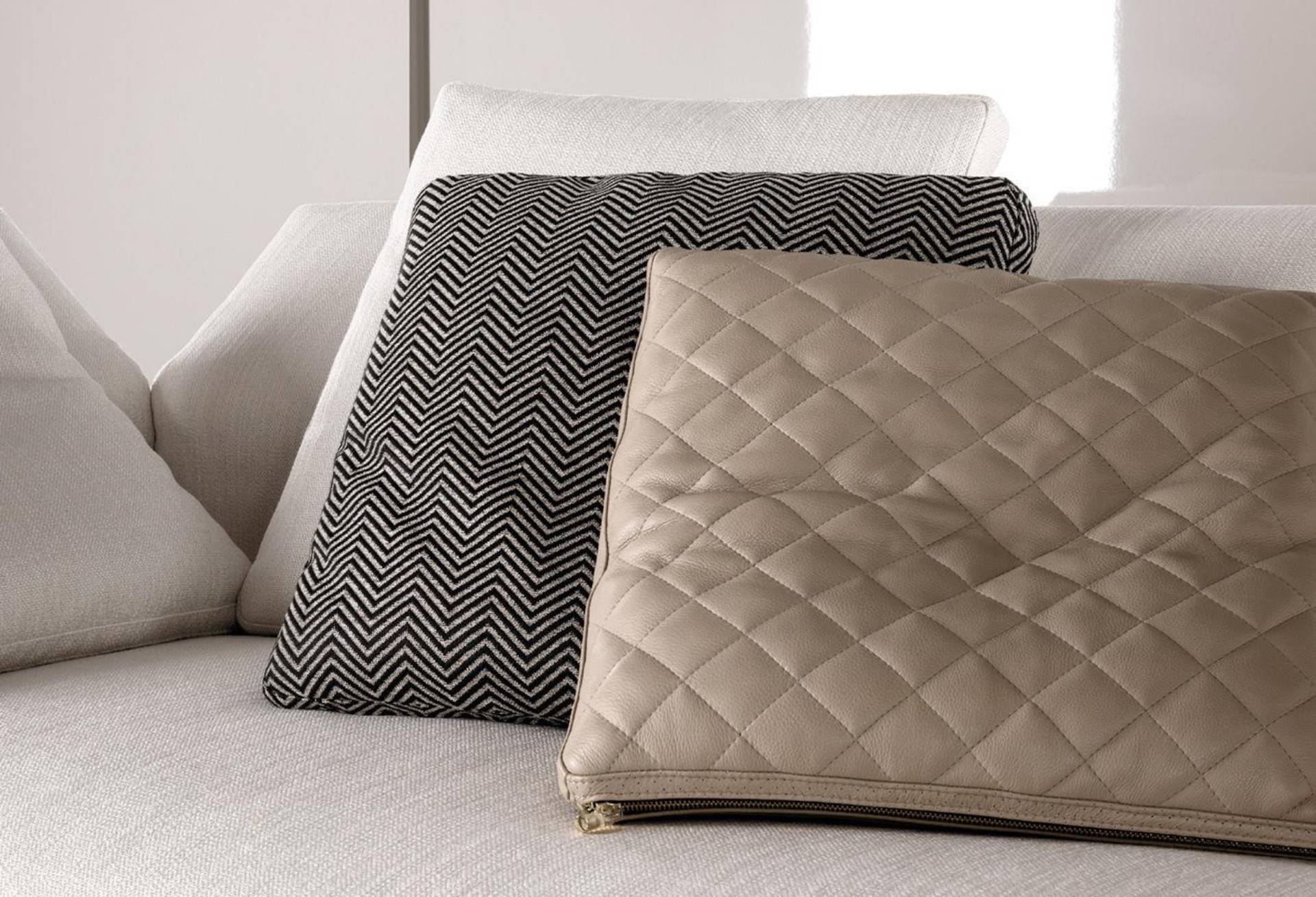 Подушка Claire украшена элегантным ромбовидным узором и застежками-молниями.