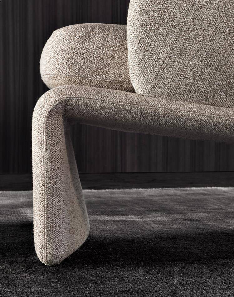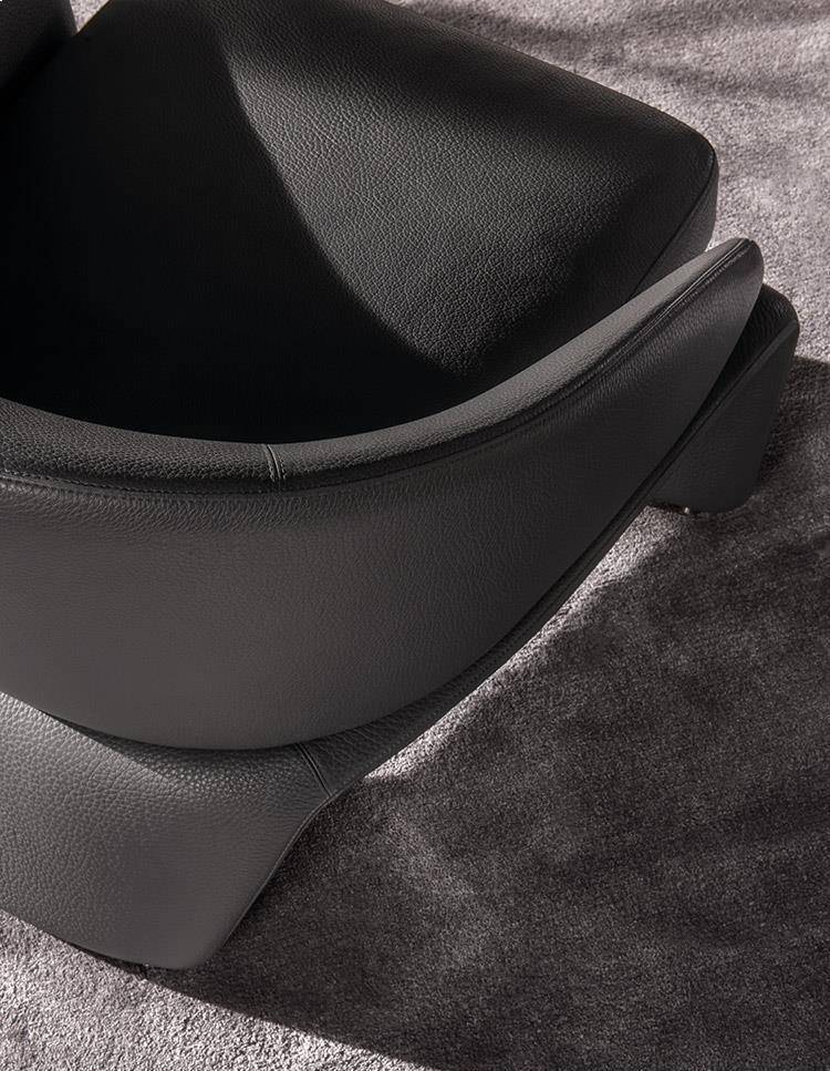The enveloping shape of the backrest back, the fluid lines of the support base and the choice of unique upholstery materials – leather or fabric – heighten the sculptural image of the Halley armchair and make it a chair that is as tastefully elegant as it is comfortable.