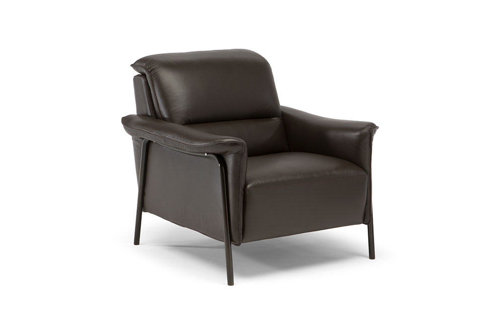 Բազմոցի հարմարավետություն, բայց աթոռի չափ։ Կոր, սրածայր կարը ընդգծում է փափուկ ձևը և նրբագեղություն հաղորդում բազկաթոռներին: Տեսանելի մետաղական ոտքերը նրբագեղություն են հաղորդում ցանկացած միջավայր, որը կզարդարի այս աթոռը: