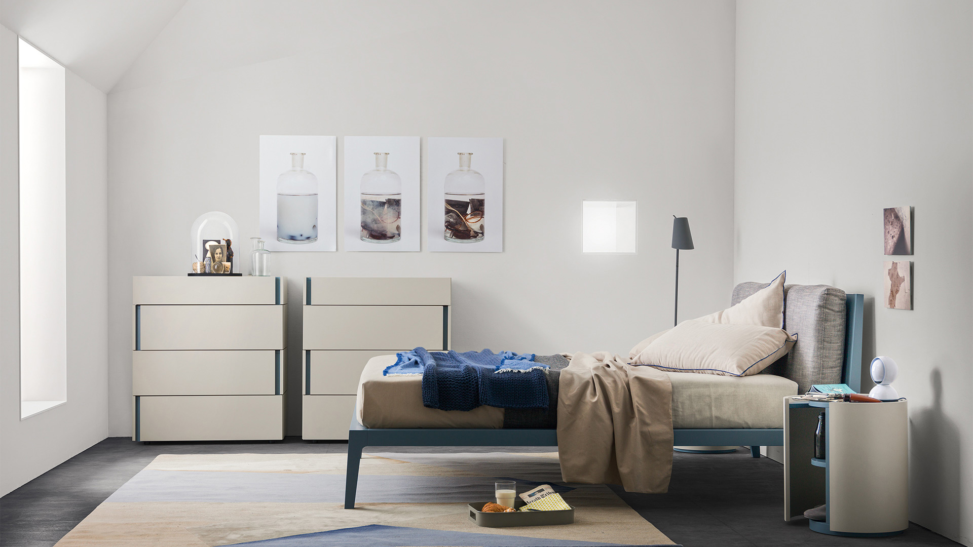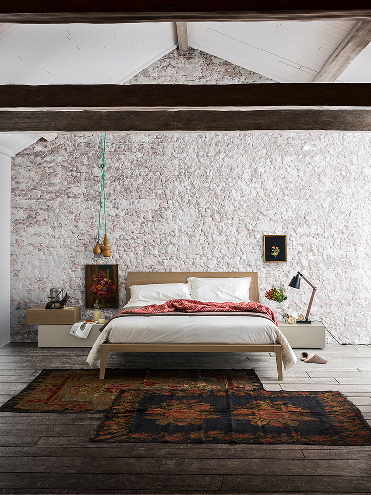 Inspired and reminiscent of retro shapes of beds of times past, with soft lines and the almost fading structure. The hint of thickness with the headboard finishes, the deign of legs and the elegant curve of all elements make it a genuine high-value piece, which can be enriched with soft headboard cushions.
