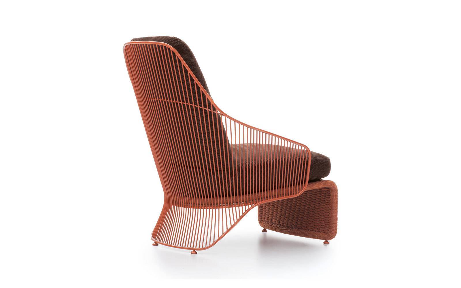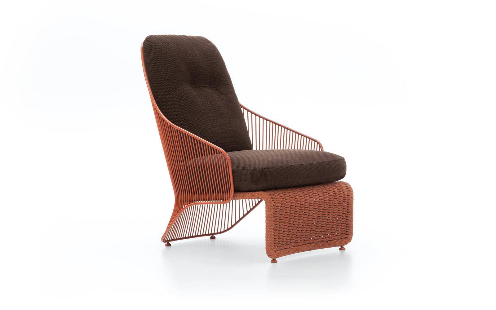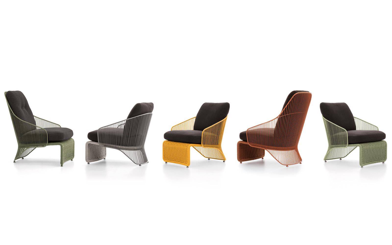 Colette “Outdoor” is an armchair with an enveloping shape that comes in an unexpected combination of innovative materials and colors designed to inject a spark of vitality and energy into outdoor living.