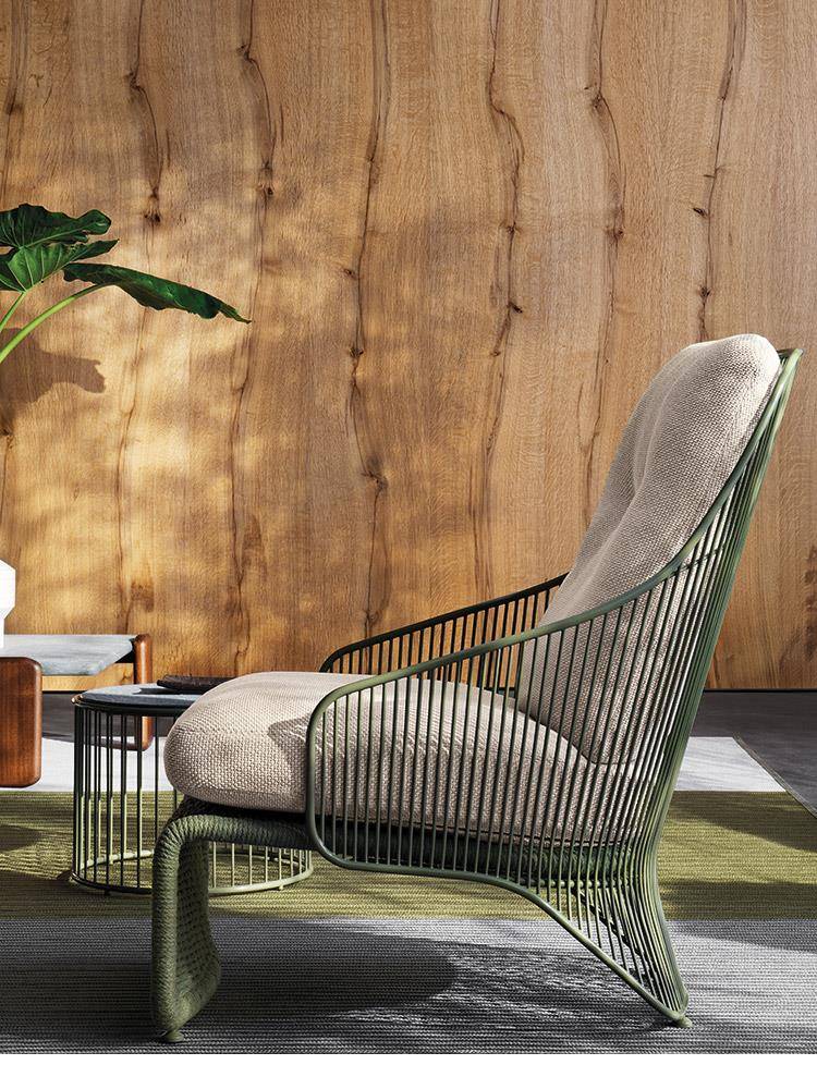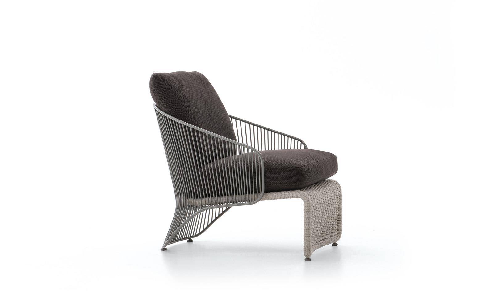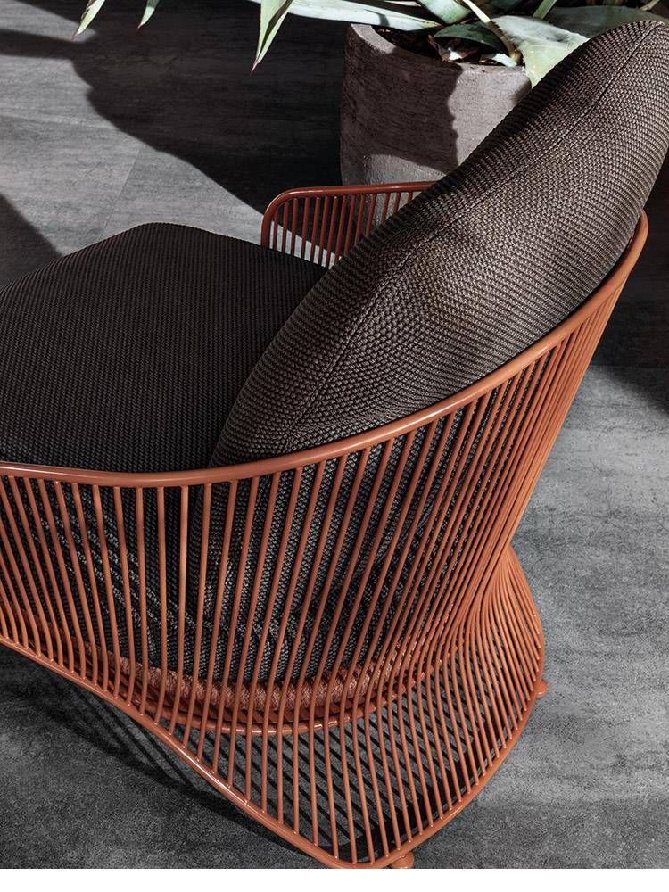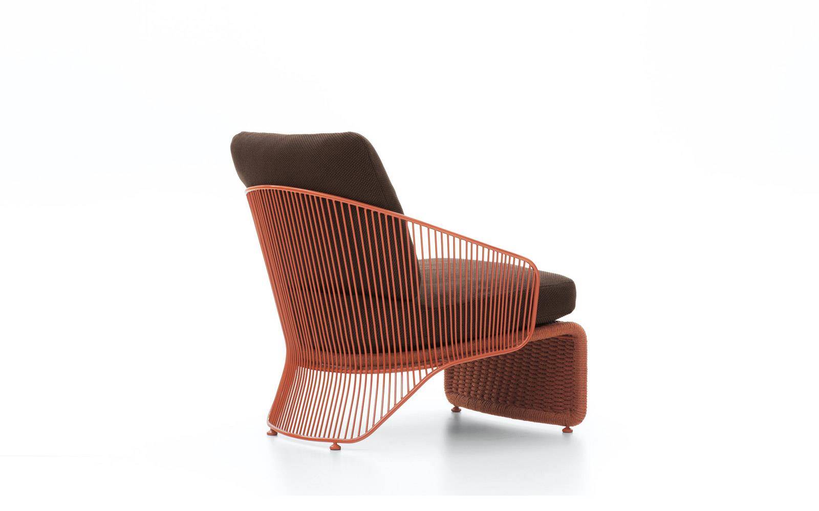 Colette “Outdoor” is an armchair with an enveloping shape that comes in an unexpected combination of innovative materials and colors designed to inject a spark of vitality and energy into outdoor living.