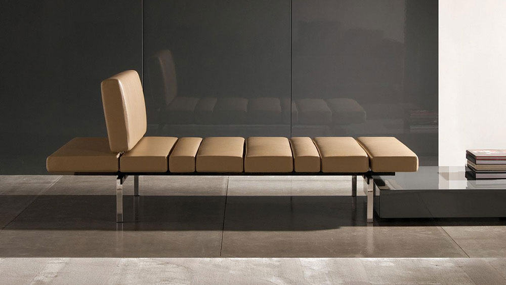 Minotti Smith Sofa is designed for use in public spaces; nevertheless, this system can be effectively matched with the models of the collection.