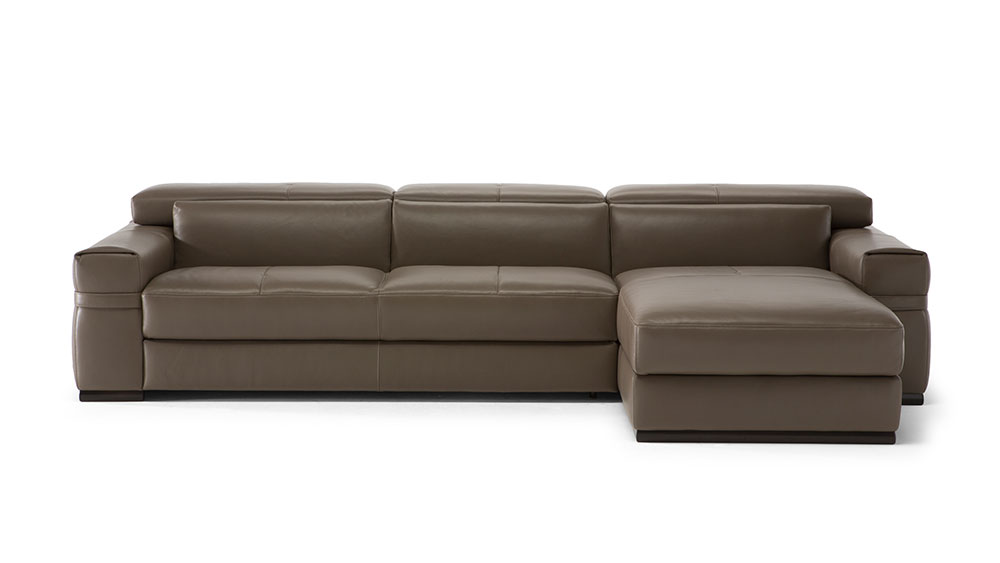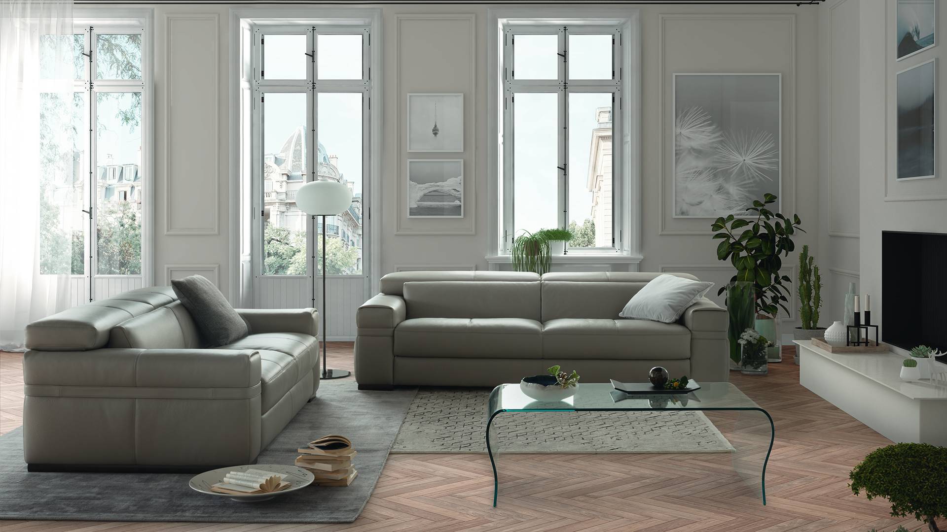Leather is the key element of the Estroso sofa, an authentic embodiment of comfort. The armrests are wrapped with a unique horizontal leather band that enhances their design.