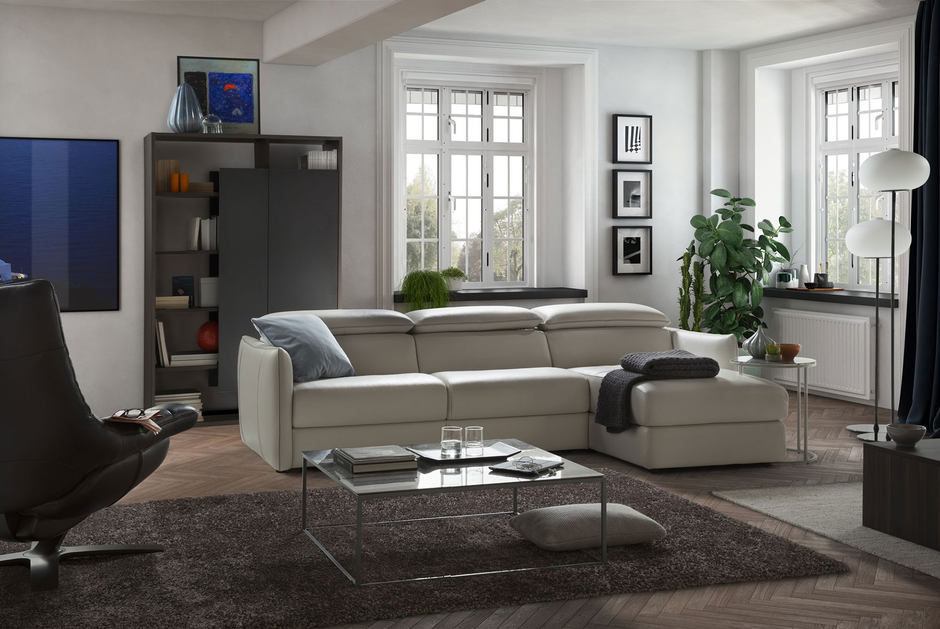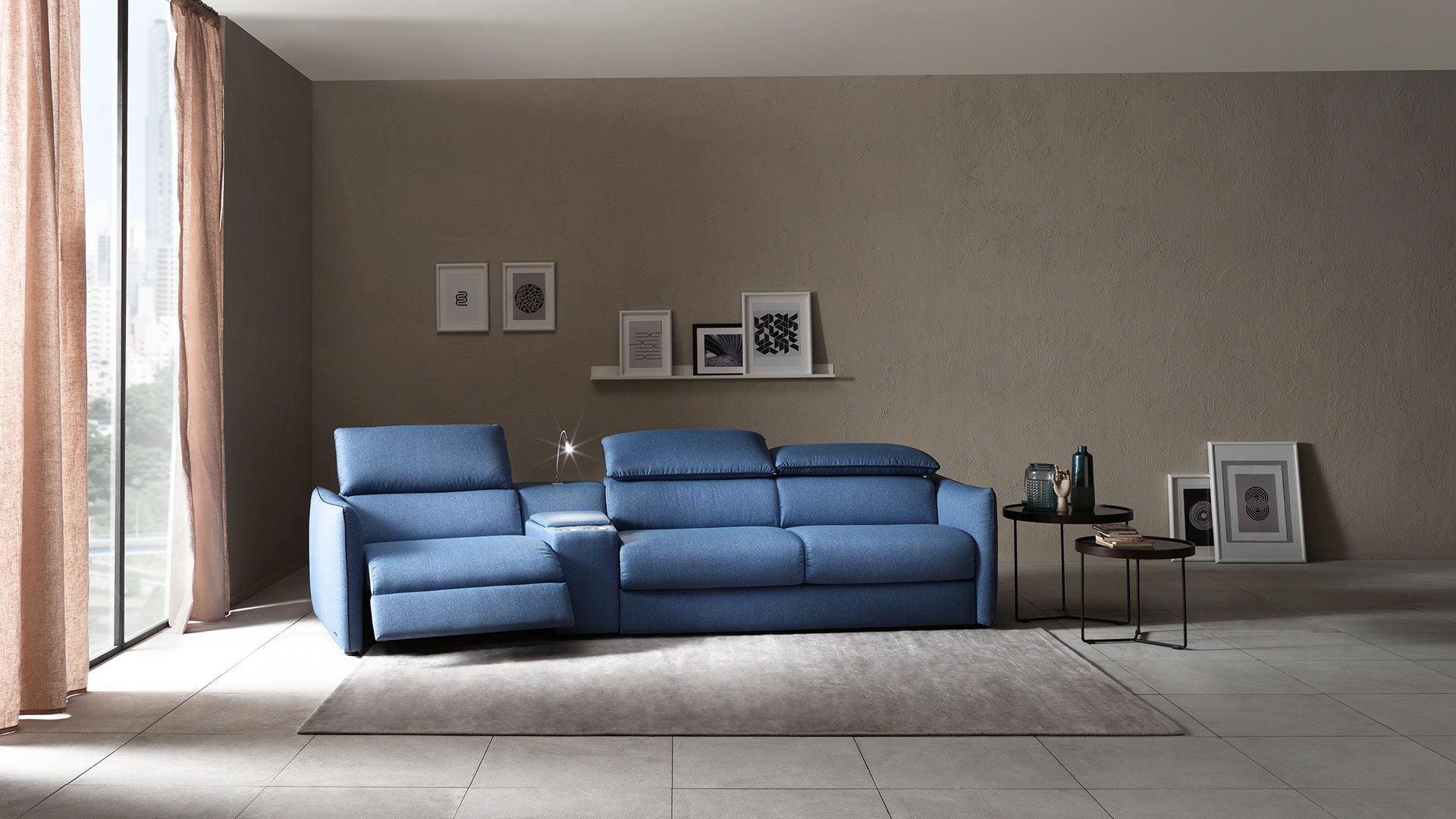 It`s a sofa that’s got it all under control: the headrests are adjustable manually, and the seating and backrest can be adjusted through a very advanced soft-touch Motion technology. And, of course, it`s a stylish piece of furniture designed with Italian taste.