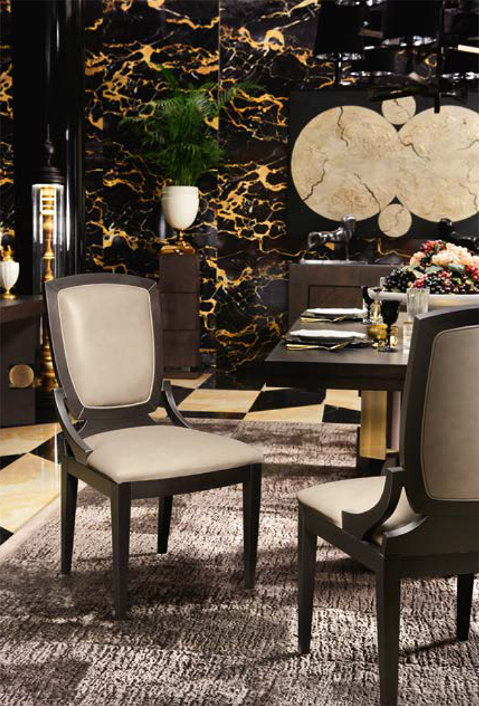 The Carla chair from the Italian manufacturer Smania. The model is made in art Deco style. The frame is made of wood. As upholstery leather.