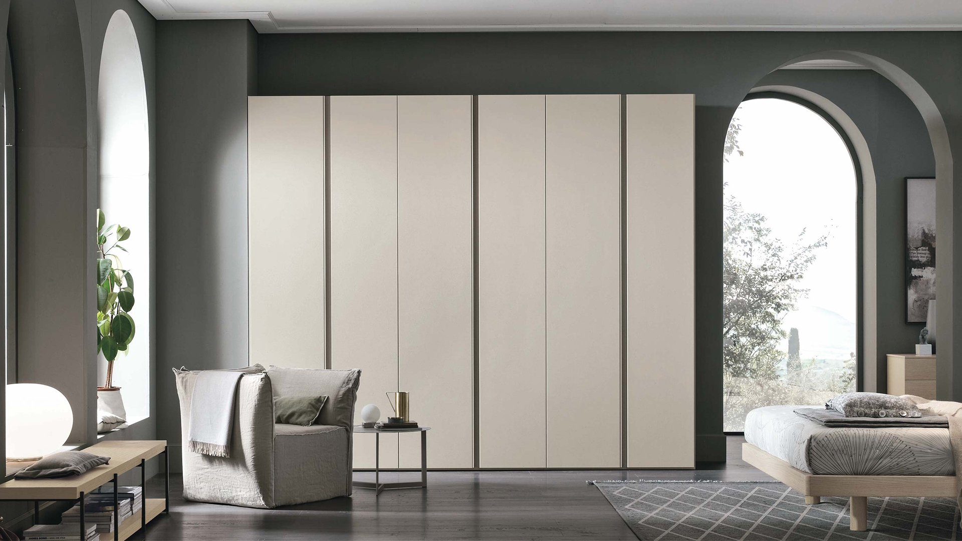 A special, decorative strip along the whole height of the door becomes the handle and can be customized using trendy colours and materials, chosen to suit your personal taste.