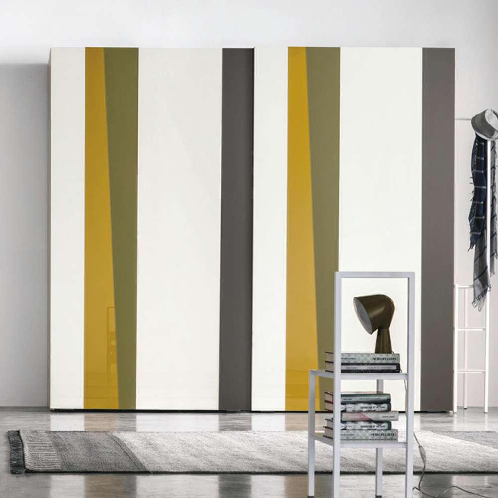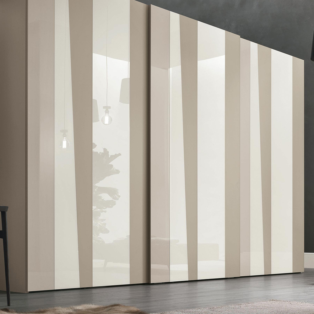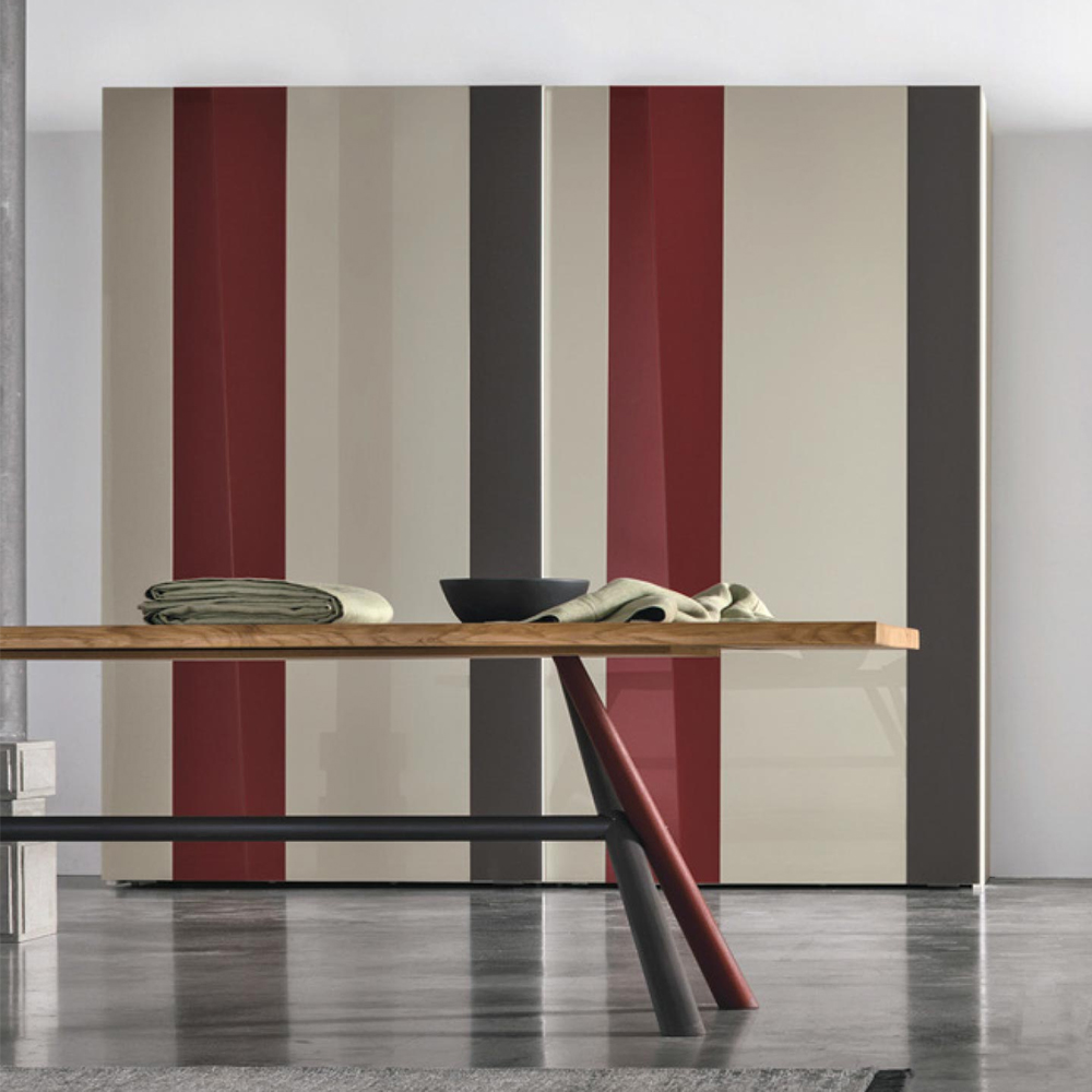 The doors are made up of various-sized strips enhanced by their oblique shapes.