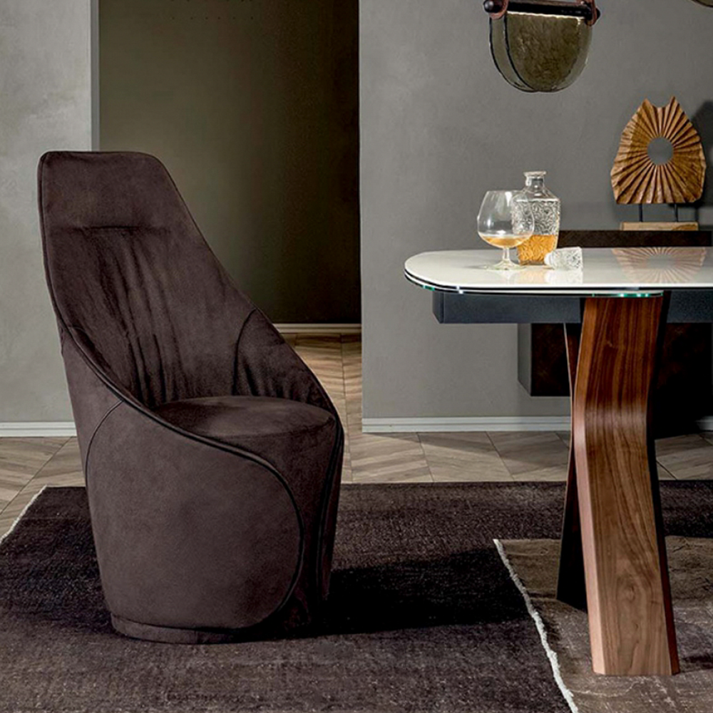A clearly enchanting collection that consist  of a chair, two armchairs  and a sofa with an attractive and refined  design.  The use and combination of the best leathers  and fabrics cover this family of seats: the maximum expression of Made in Italy.