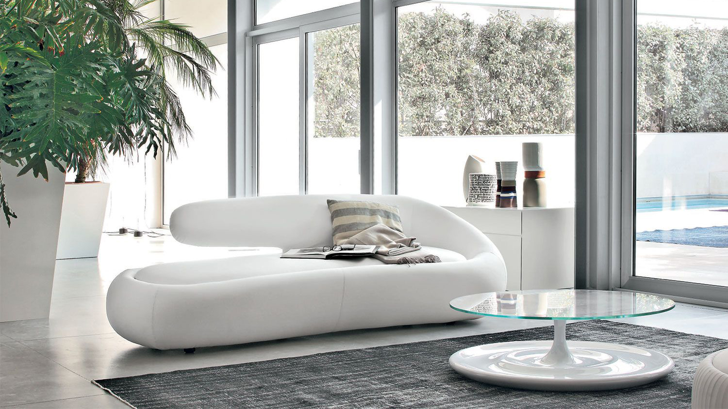 This sofa will embrace you like a glove; its every finishing - both leather and eco-leather - exzolt its peculiar shape and curves. An example of soft innovation, perfect for every living-room.