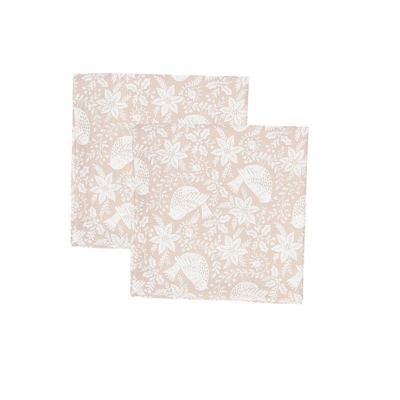 Set of 2 Gardenbosh napkins is part of an elegant collection of cotton and lace textiles in beige tones. Covered with floral prints, garlands and birds, and embroidered with white lace, these placemats will decorate your table setting with a classic and sophisticated touch, bringing an air of tenderness to your Christmas kitchen.