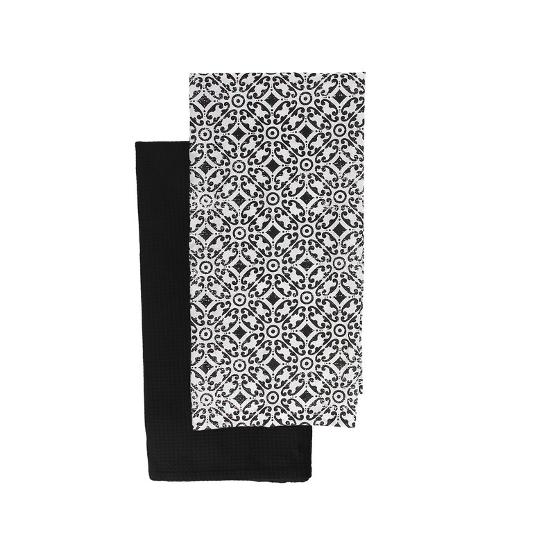 A pair of Tuxedo kitchen towels, part of the Andrea Fontebasso collection.