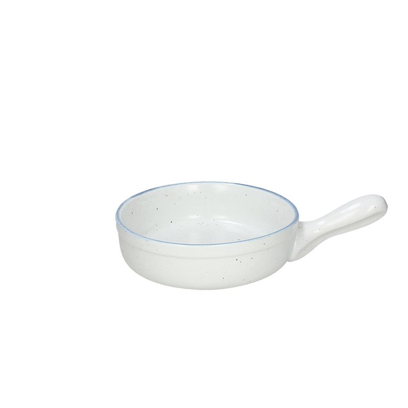 The Organica Mare collection is a new and unusual line of traditional tableware. It is presented in white with dark patches and a blue border.