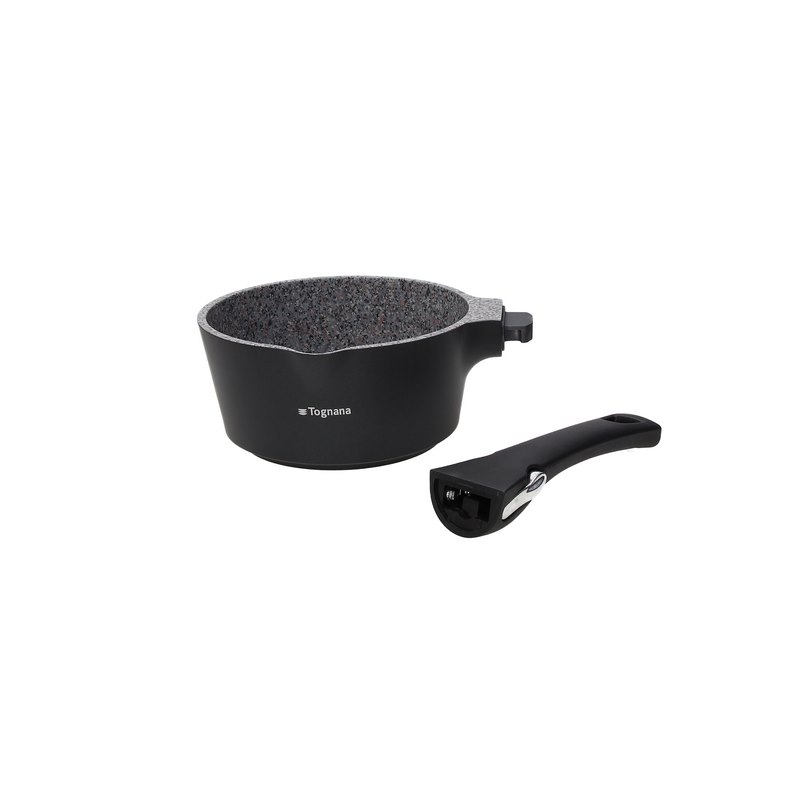 The innovative, versatile and functional design of the Ambiziosa collection makes cooking easy and enjoyable. High quality granite effect non-stick coating, free of PFOA and nickel particles, which makes cooked food healthy and tastes natural. Thanks to the extra thick aluminum layer and the steel base, the cookware is suitable for cooking on all types of hob. The pan has a removable handle for easy storage. The saucepan has a removable handle for easy storage.