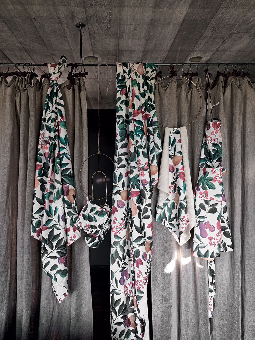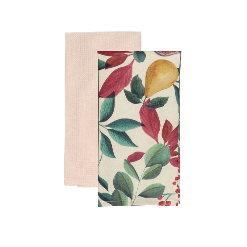 In fact, seasonal fruits and dark shades of blue and purple adorn these kitchen towels, perfect for cleaning the house, and they can be combined with the entire collection of textiles and matching utensils to create a set that will brighten up your table and your kitchen, adding taste and sophistication.