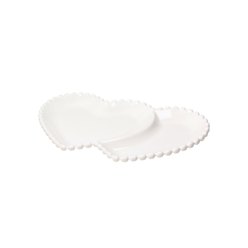 Double hearth plate is distinguished by its original shape and edging, covered with small embossed pearls, giving it elegance and sophistication. Ideal for serving appetizers, sweets or salads, creating a unique and spectacular setting that will amaze your guests.