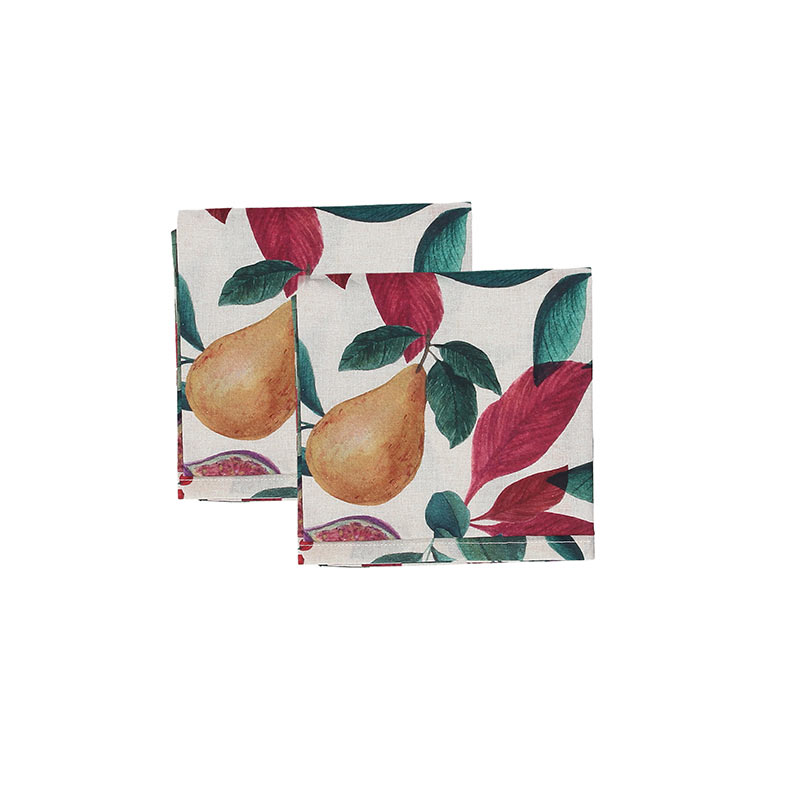 The napkins are adorned with seasonal fruits and dark shades of blue and purple, perfect for embellishing your decor and pairing perfectly with the tablecloths in the same line.