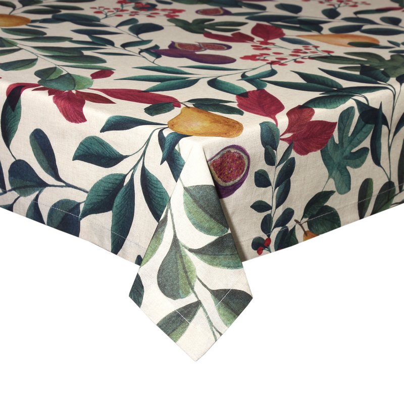 In fact, seasonal fruits and dark shades of blue and purple adorn this 8-10 seat tablecloth, perfect for embellishing your setting, giving your room a taste and sophistication.