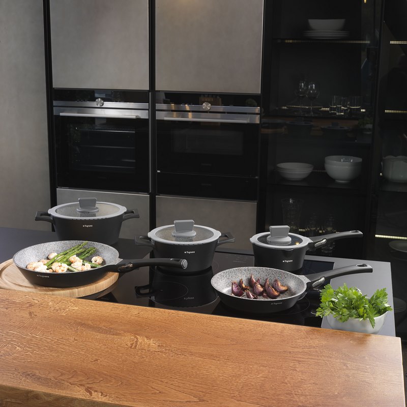 The innovative, versatile and functional design of the Ambiziosa collection makes cooking easy and enjoyable. High quality granite effect non-stick coating, free of PFOA and nickel particles, which makes cooked food healthy and tastes natural. Thanks to the extra thick aluminum layer and the steel base, the cookware is suitable for cooking on all types of hob. The pan has a removable handle for easy storage.