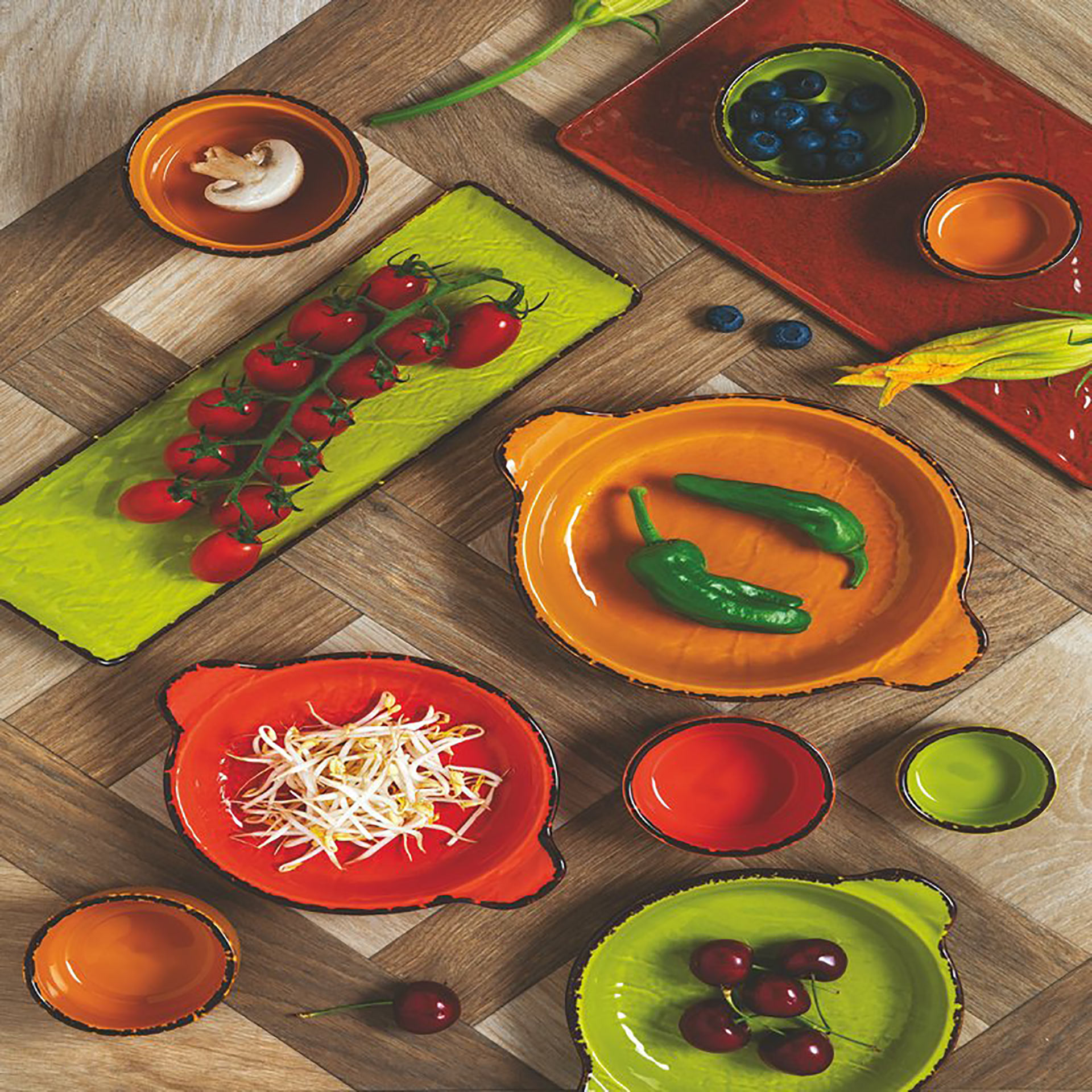 The Vulcania Veggie range surprises with rich colors inspired by natural hues such as vegetables and fruits. The colors seem to be inspired by the different periods and appearance that fruits and vegetables take on as they ripen. With nature-inspired hues, impeccable quality and a shape specially designed for easy and safe handling, the Vulcania Veggie line is the perfect choice for those who want to add color and quality to their meal.