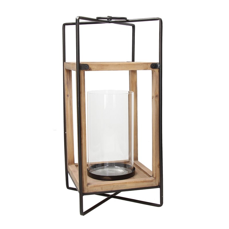 Large lantern with metal support Tonet is a lantern with modern taste and details in metal and wood, ideal as a decorative piece of furniture for the corners of your home.