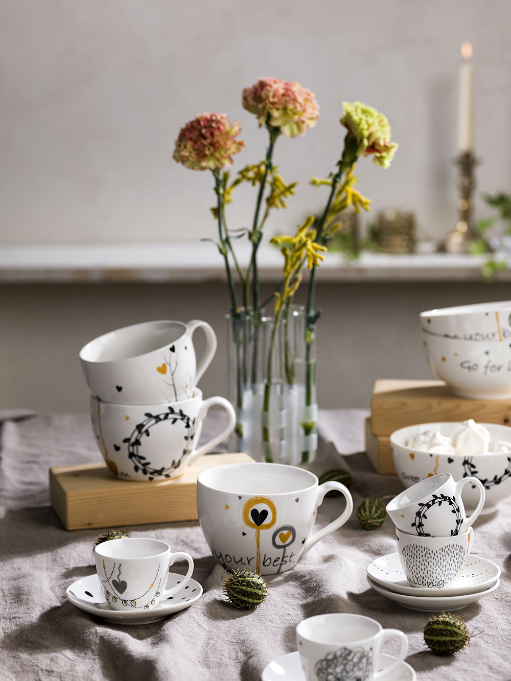 Mug of the Iris Goldy series in natural white color with a pattern. Modern minimalist design and earthy tones embody simplicity and harmony of balance. All mugs have their own non-repetitive pattern, so that each product is unique in its own way. They combine with each other in style and the smallest details.