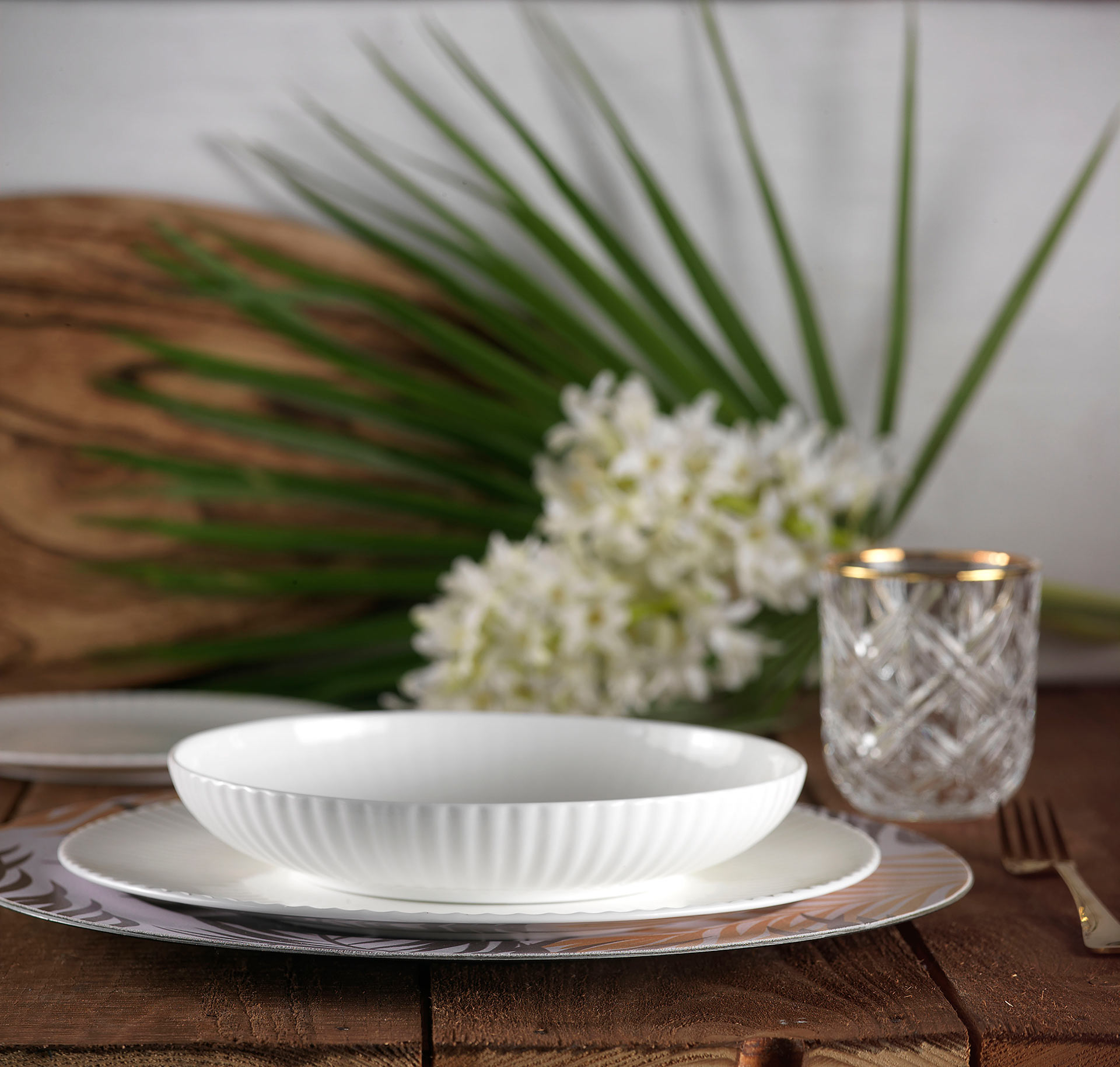 The modern finishes of the Radius collection in real bone china can bring the elegance and carelessness of the moment to your tables.