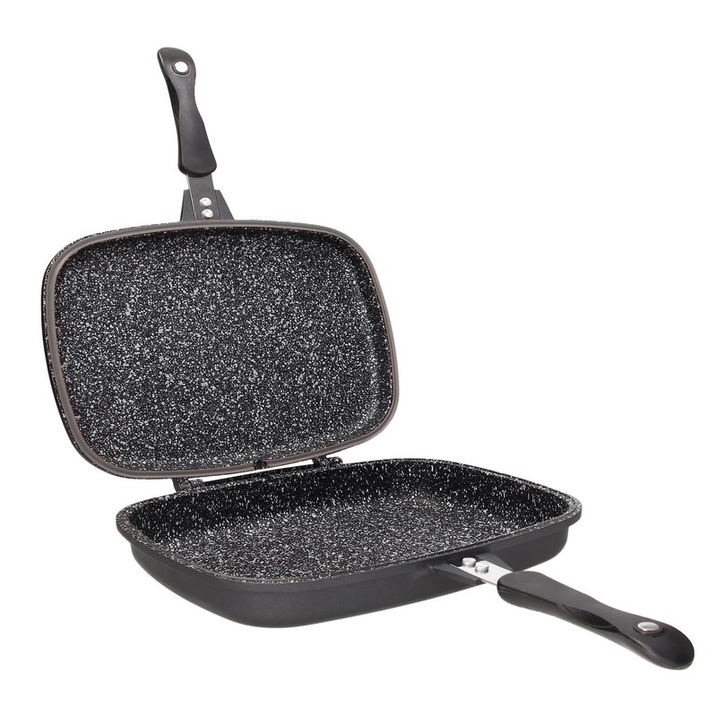 The body is made of die-cast aluminum with an inner layer of porcelain microspheres, which guarantees excellent non-sticking; the bottom is made of anti-deformation heat-radiating stainless steel, which ensures excellent performance at high temperatures even on induction hobs.