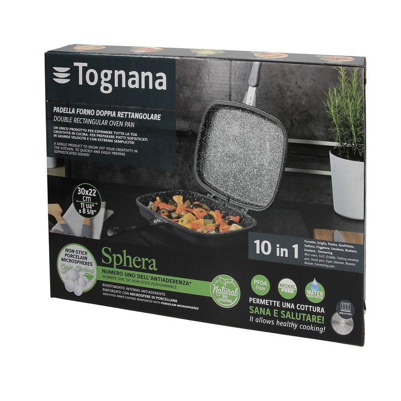 Die cast rectangular oven with double pan from the Sphera line can be used as an oven, plate, grill, deep fryer and saute pan. The one essential product to express all your creativity in the kitchen.
