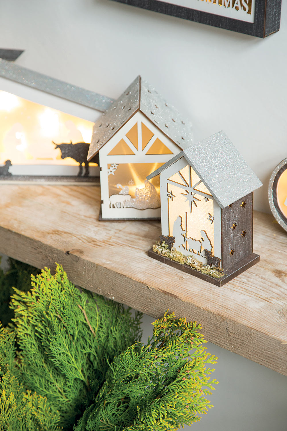 Wood-coloured star-shaped decoration embellished with a silver sheen. The sophistication of every detail, Walnut line and lighting bring the warmth of Christmas to every part of your home.
