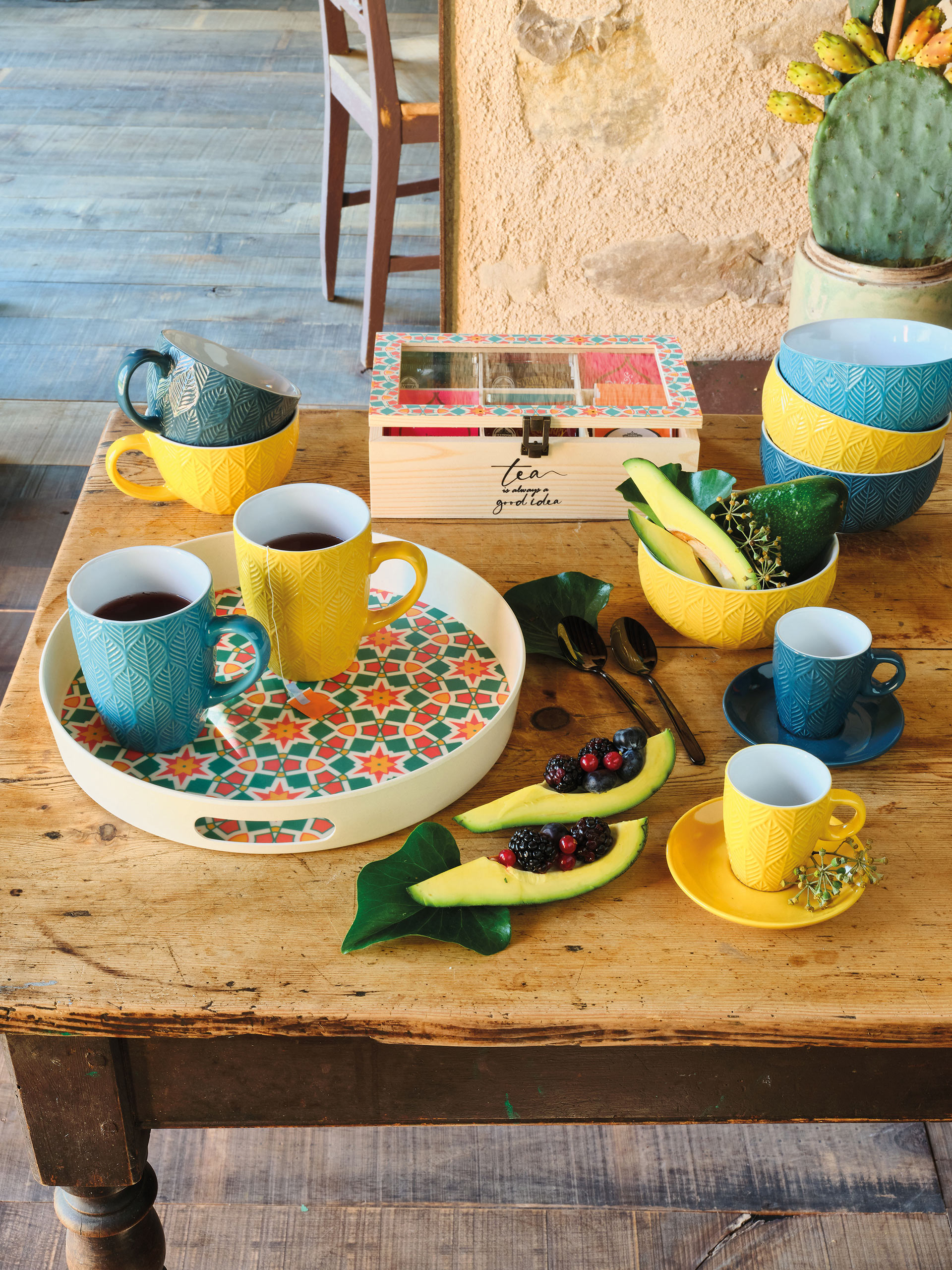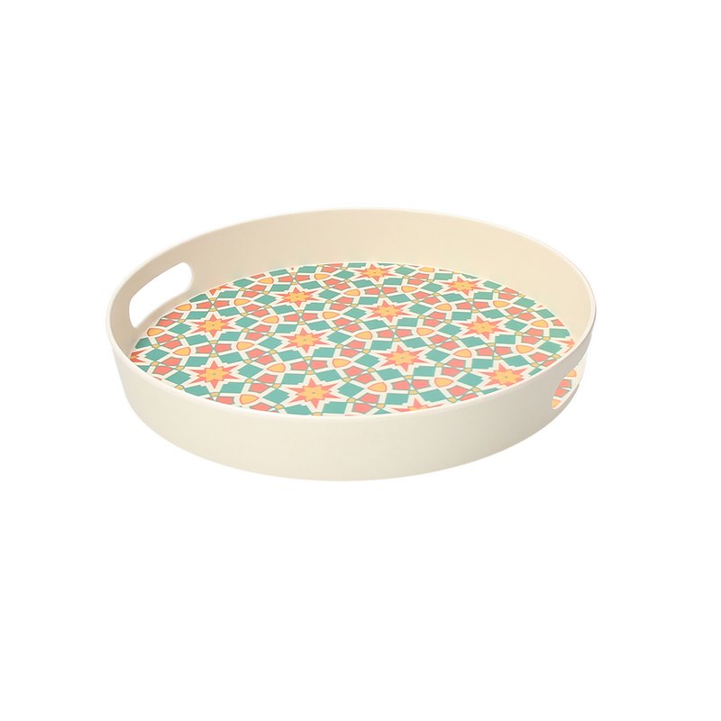 The original round tray from the Maya line is part of a unique collection of tableware inspired by South America. It can be used both in the kitchen and for serving various dishes.