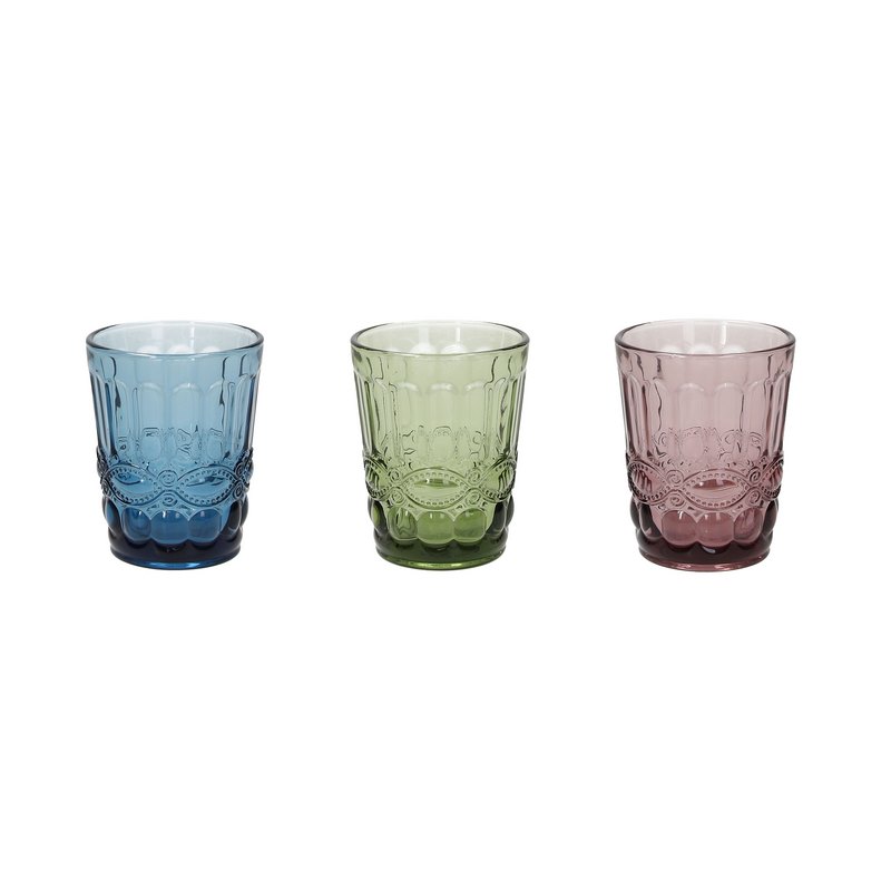 A set of 3 multi-colored glasses from the Madame line has an original shape and design.