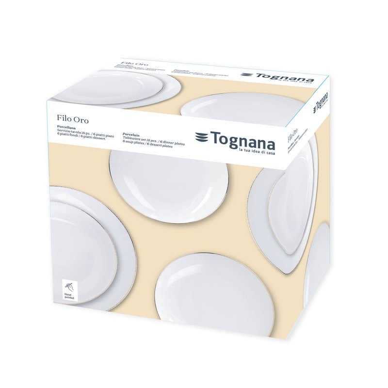 The Filo Oro table set is surprisingly simple and elegant in its fresh white hue. Thanks to the fine work of the craftsmen and the golden decor, the products will harmoniously fit into the interior of the dining room or kitchen during a festive reception, as well as make a truly luxurious everyday meal.