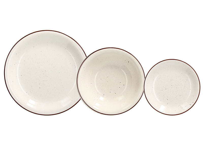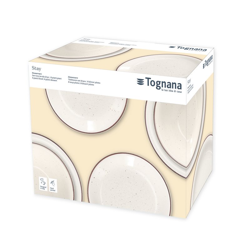 The Stay table set is made of high quality ceramics. The spot decor of the plates, a combination of beige and brown, brings a modern rustic style to the table setting that will surprise your guests and make them share sweet moments of fun. The service is packaged in a presentable cardboard box, which does not require additional gift wrapping.