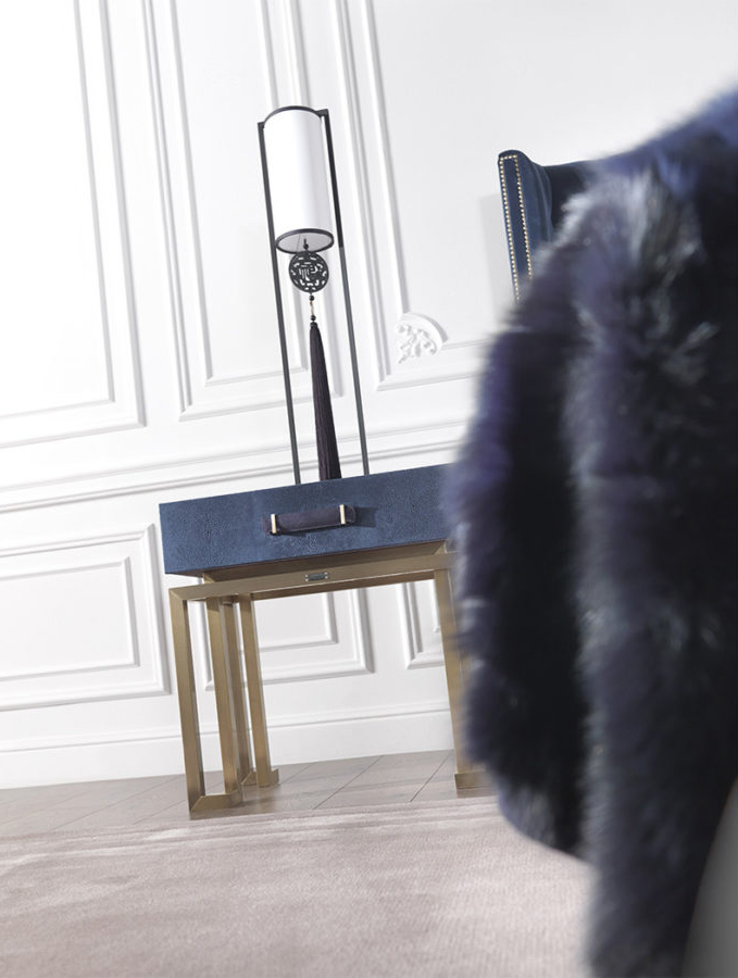 Night table with metal base in bronzed finishing. Upper structure in multi-layer poplar covered with leather cat. B | L.03.02. Leather handle.