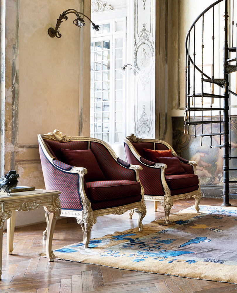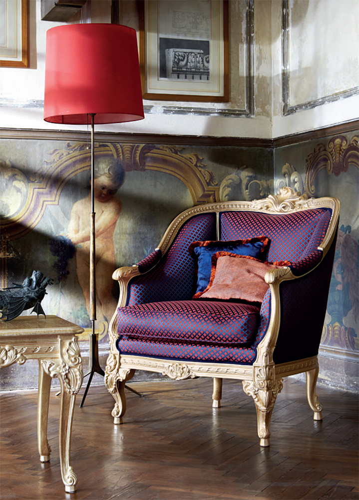 Ares chair from the Italian manufacturer Silik. The frame is made of wood. Upholstery - textiles from the company portfolio. Decor - hand carved in white gold finish.