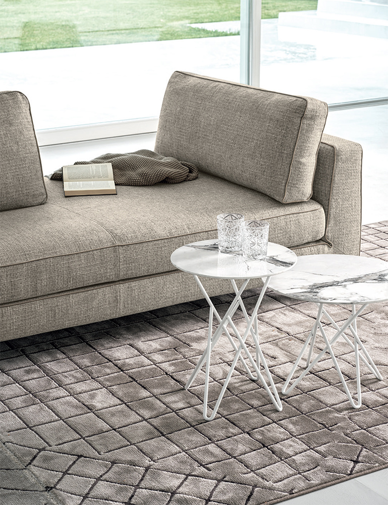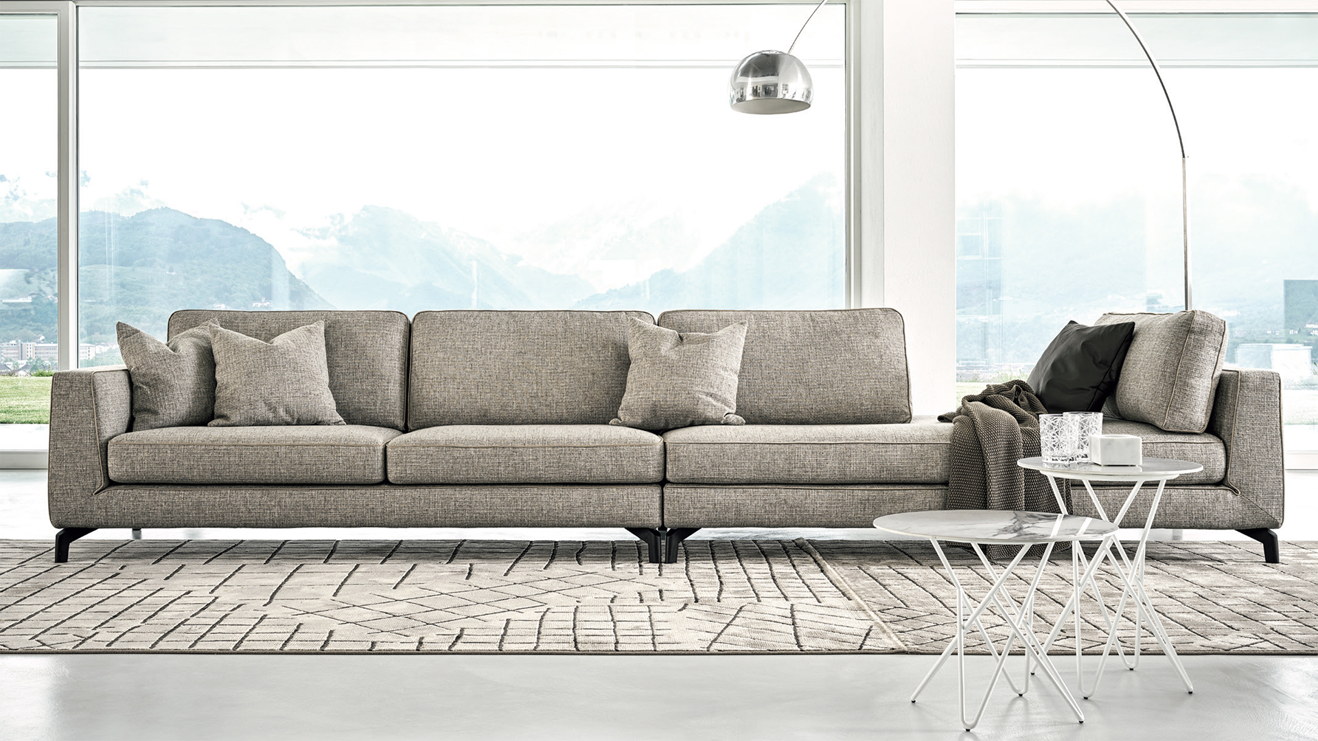 The trapezoidal section armrest makes the seat wider and more comfortable. Some versions of the Carré sofa offer a convenient integrated storage.