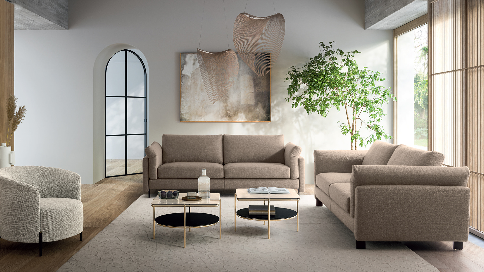 Խիստ և էլեգանտ, նախատեսված հարմարավետ կյանքի համար, Meridien-ը հեշտությամբ տեղավորվում է ավանդական և ժամանակակից ինտերիերի մեջ: Հարթ մետաղական ոտքերը աջակցում են բազմոցի կառուցվածքին: Փափուկ հենակը ու հարմարավետ  արմունկի հենակները հատուկ հարմարավետություն են հաղորդում և թույլ են տալիս հանգստանալ:
