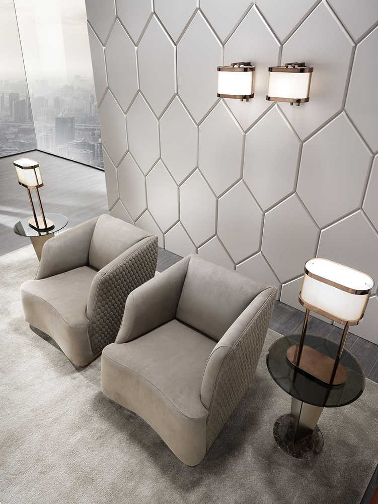 Venice բազկաթոռը մարմնավորում է իսկական հարմարավետությունն ու վենետիկյան դիզայնի արձագանքները: Ունի ծավալուն ձևեր և կողային տարրերի արտաքին դեկորատիվ կարում։ Ոտքերի փոխարեն աթոռն ունի հարթ ամուր հիմք: