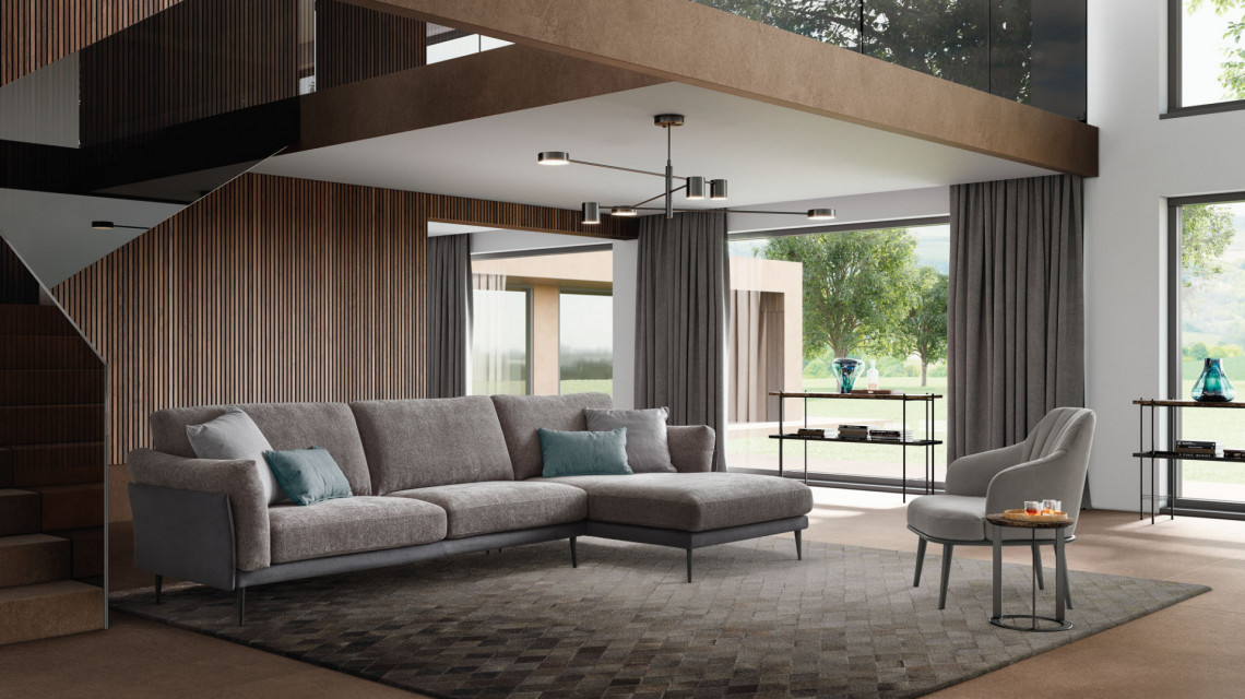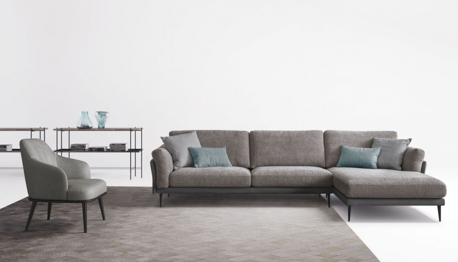 Nicol-ի նրբագեղ կտորից պաստառին հաճելի է դիպչել և տալիս է անսովոր տեսք: Բարձր, նրբաճաշակ ոտքերը բարձրացնում են այս ընդարձակ բազմոցը, որն աչքի է ընկնում իր ոճով և նյութերի հետաքրքիր խառնուրդով: