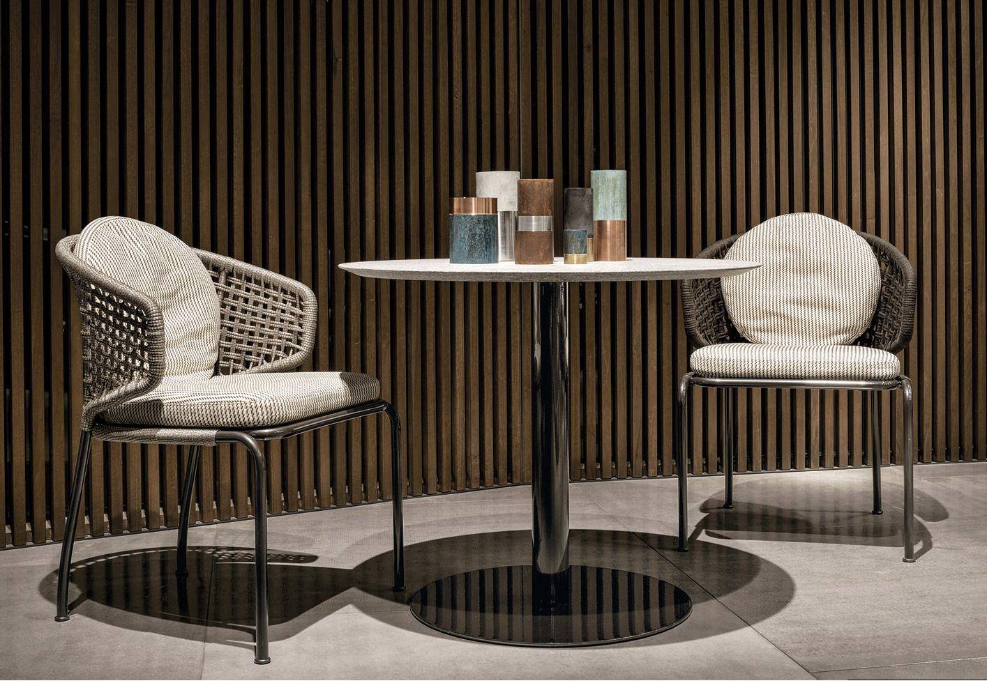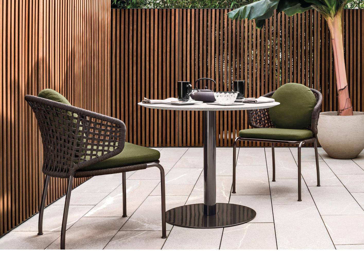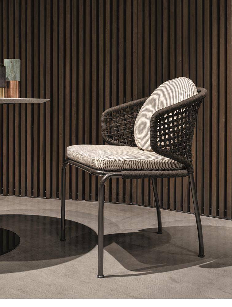Aston <<Cord>> Outdoor հավաքածուն ներկրվում է անագի գույնի մետաղական շրջանակով, որը ներկված է բացօթյա օգտագործման համար հատուկ մշակված պոլիեսթերով, ինչպես նաև անջրանցիկ գործվածքով ծածկված փափուկ բարձերով: Հենարանը պատրաստված է 7 մմ տրամագծով հատուկ հյուսված պոլիպրոպիլենային լարից, որը հասանելի է տարբեր գույներով: Նստատեղերը զարդարված են Minotti Studio-ի բացառիկ լազերային երկրաչափական դիզայնով:
