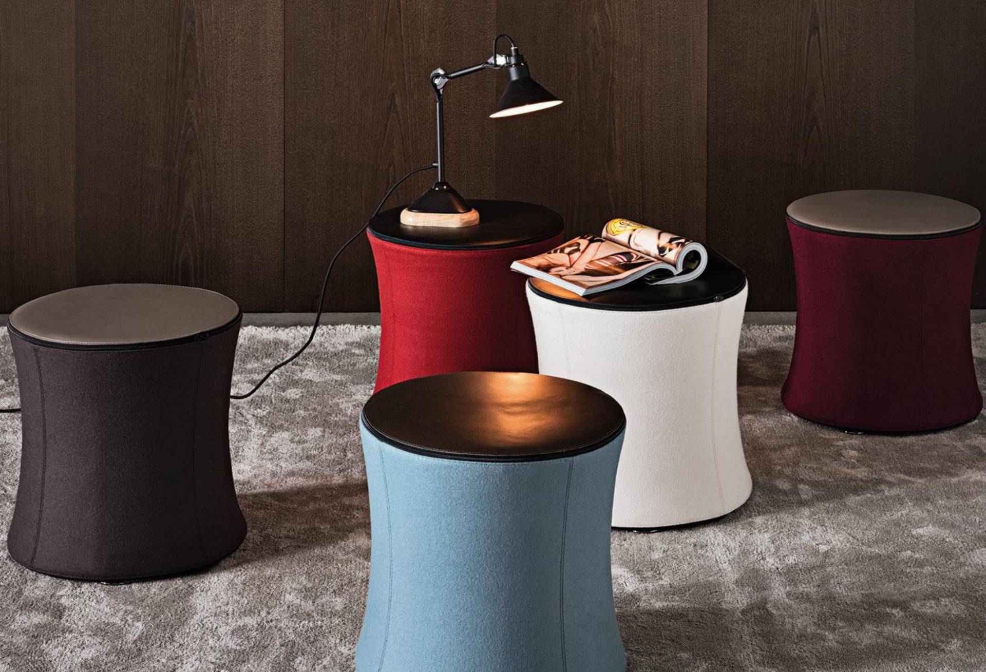 Յուրաքանչյուր պուֆին բնորոշ է կոմպակտ ոճը և նրբագեղ դետալների նկատմամբ ուշադրությունը, ինչպիսիք են սագի միջուկը, թամբի կաշվե ծածկը՝ Minotti-ի տարբերանշանով և նրբագեղ սև նիկելային մետաղական ոտքեր: