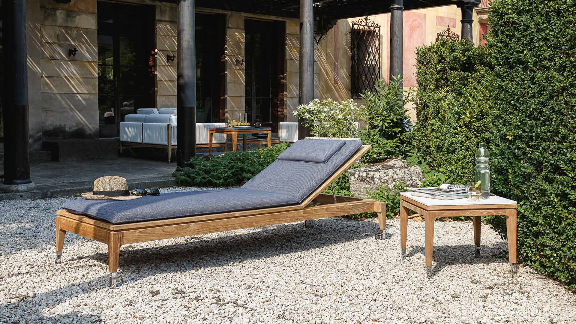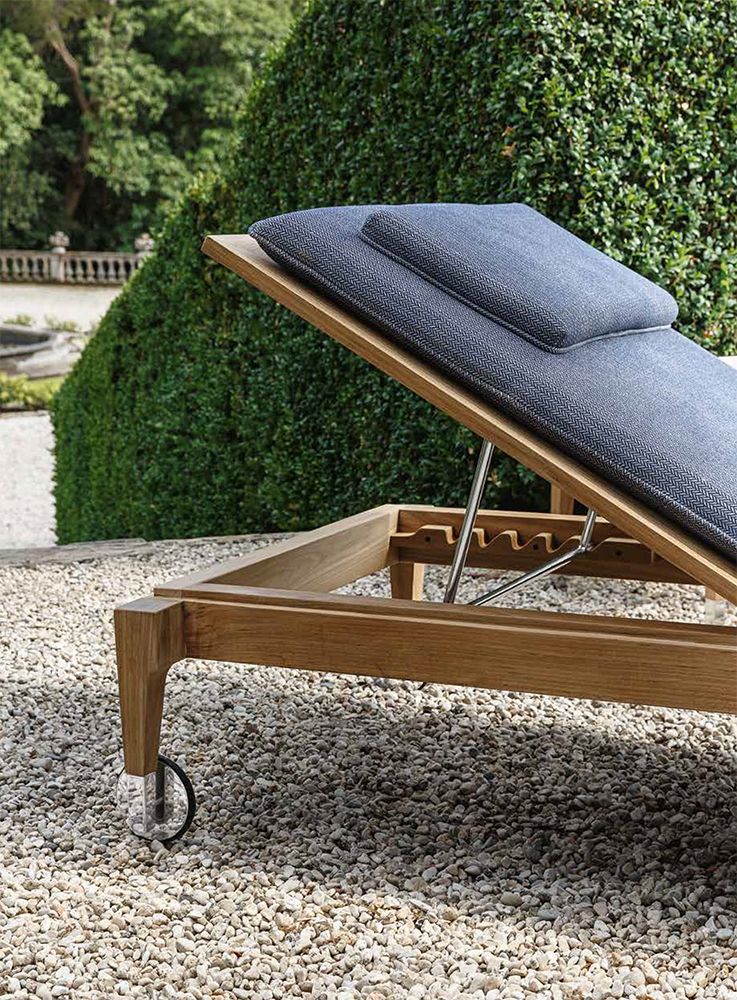 Ծալվող տեքից շեզլոնգ՝ փայլեցված պողպատե դետալներով: