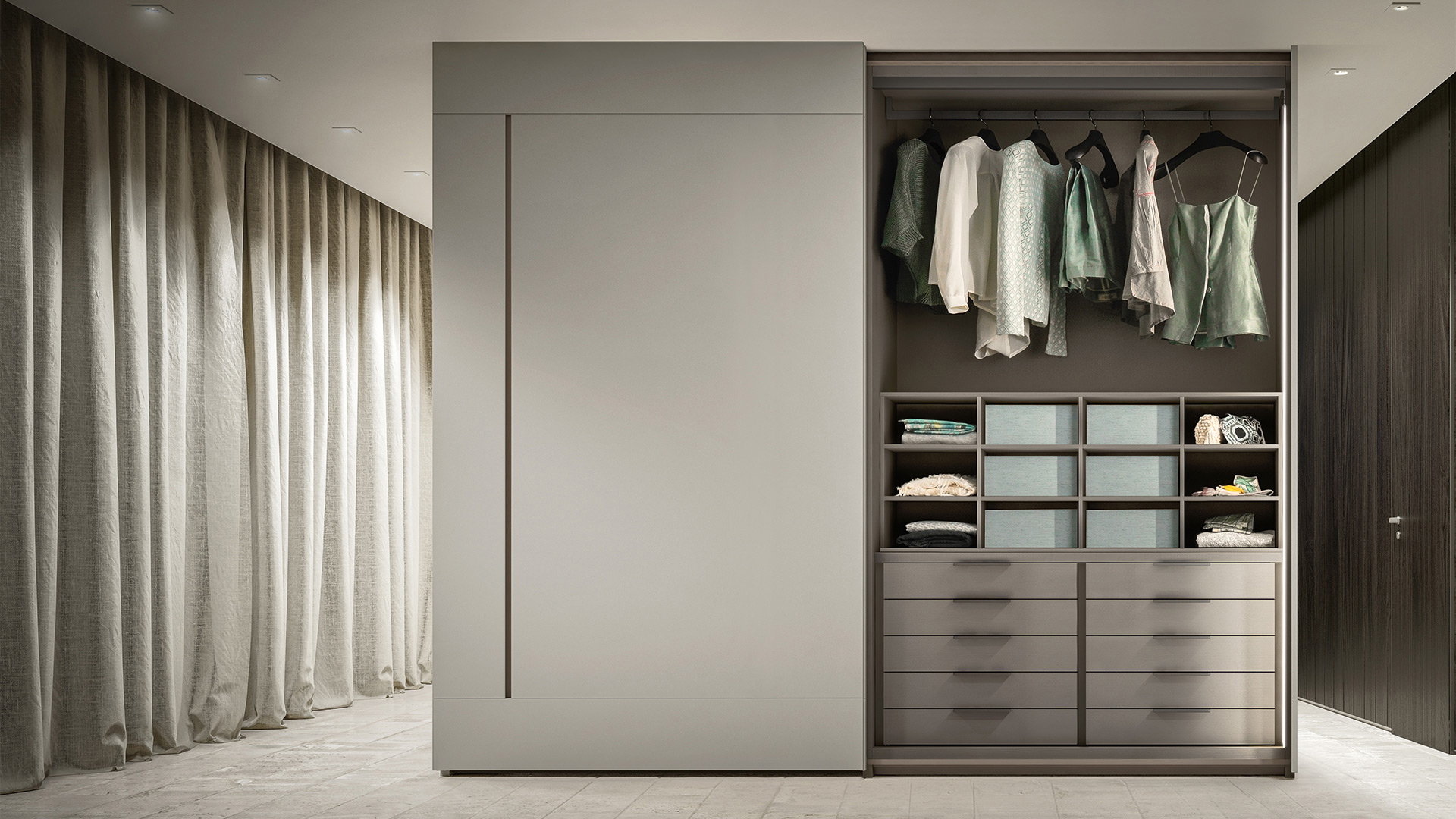 Glide զգեստապահարանը հասանելի է սահող կամ համակողմանի դռներով և ունի ներկառուցված բռնակ: Դա մի տարր է, որը չի կարելի բաց թողնել  լավ կահավորված և ֆունկցիոնալ ննջասենյակում: