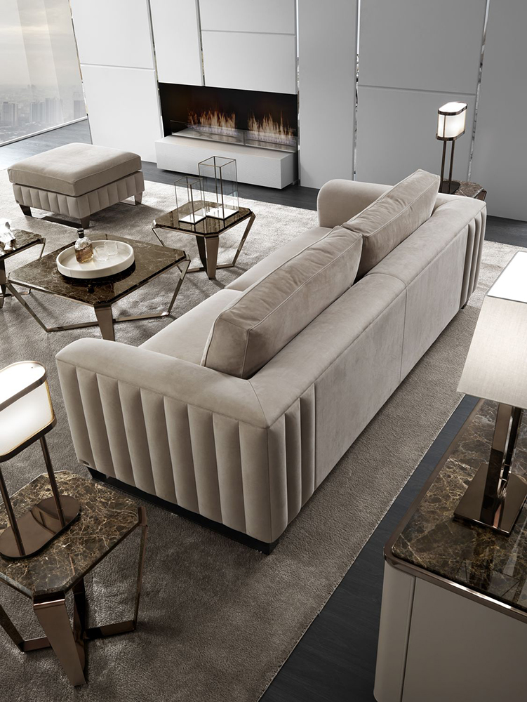 Диван со структурой из массива дерева и пенополиуретана. Возможны различные варианты обивки.