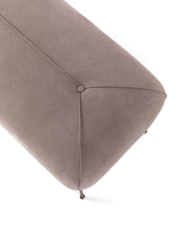 Универсальный и оригинальный пуф-скамья Rowe с латунными ножками. Обивка плиссированная из толстого бархата с сильной геометрической игрой, возникающей в результате сочетания трапециевидных форм. Структура из бука и пены. Ножки с бронзовой латунной отделкой.